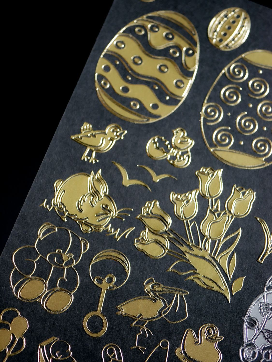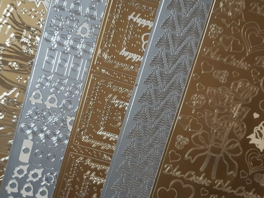 Peel off stickers are an excellent product for decoration. They can be glued to any smooth surface. They can be used to decorate paper, wood, glass or porcelain. They will beautifully decorate the photo album, invitations, but also glass tableware for a family celebration. Peel off stickers are of good quality, which allows you to make corrections if there is a sticking error. The pell off sticker sheet is 10 x 23 cm in size, gold or silver color. |