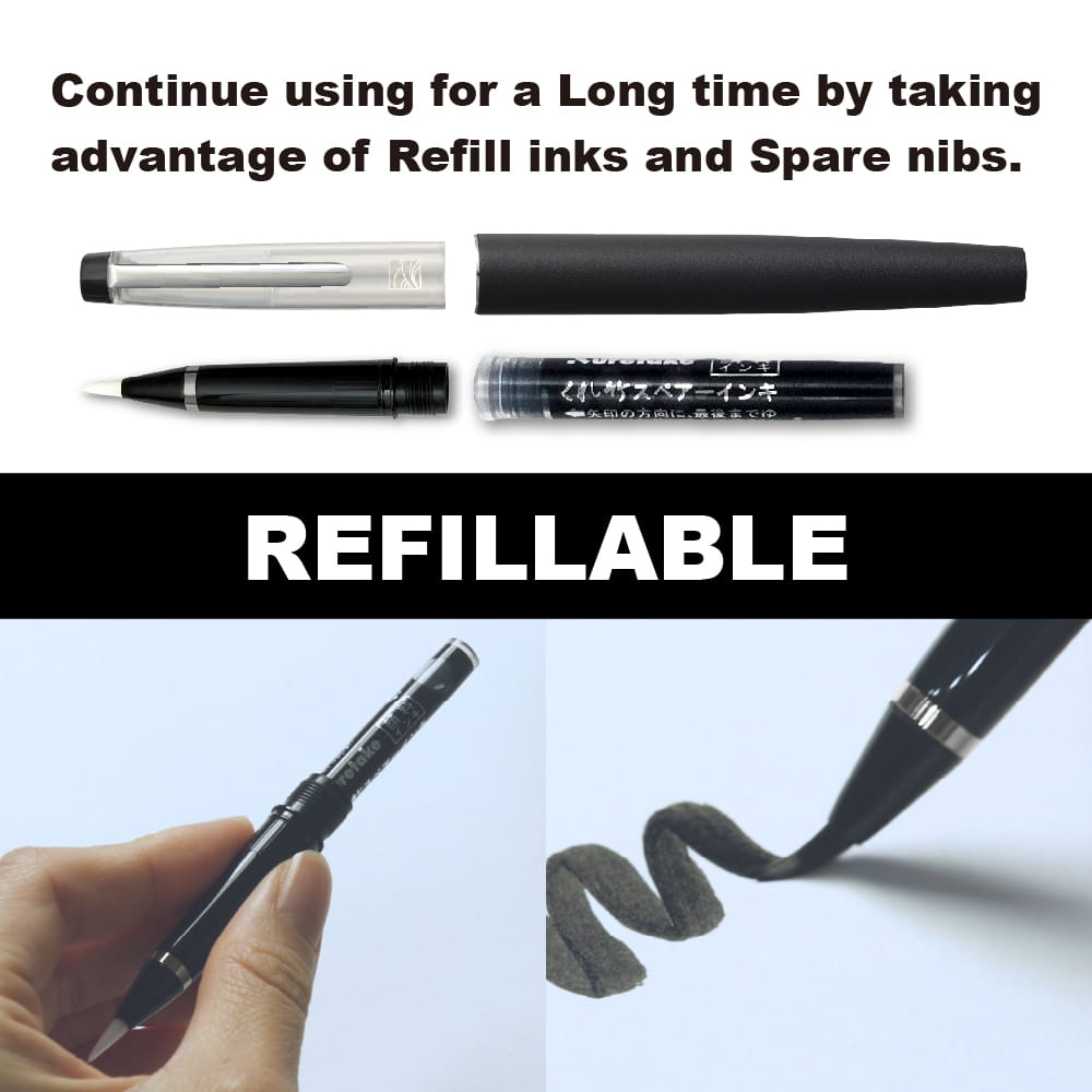 The Mannen Mouhitsu is compatible with replaceable ink cartridges, available in both dye-based and pigment-based versions (sold separately), allowing you to customize your writing or drawing experience.